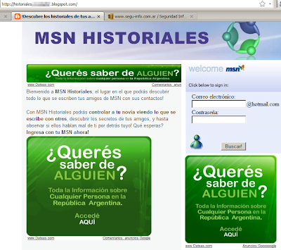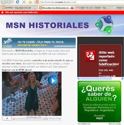 Como puede verse, aparecen tres anuncios de la misma empresa en una página falsa para conocer historiales de MSN.